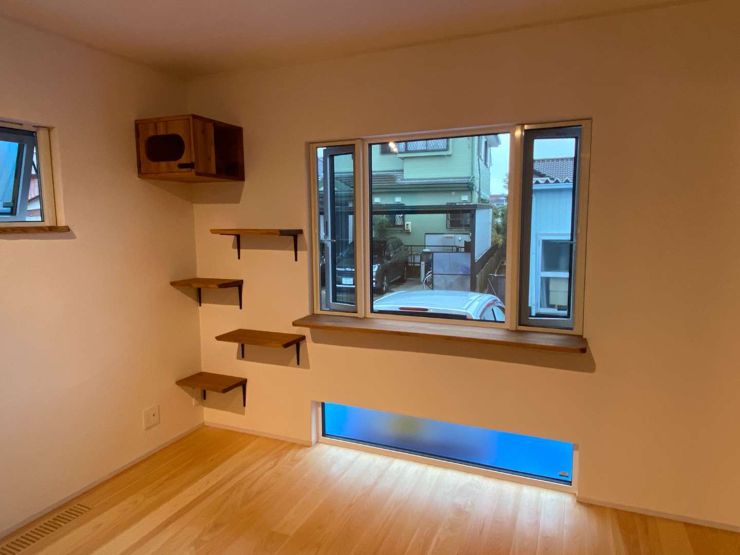 キャットウォークや窓台をノタ付きの無垢材でつくっていただいたところもお気に入りで、家の中に自然の温もりがより感じられるのがとても気に入っています。