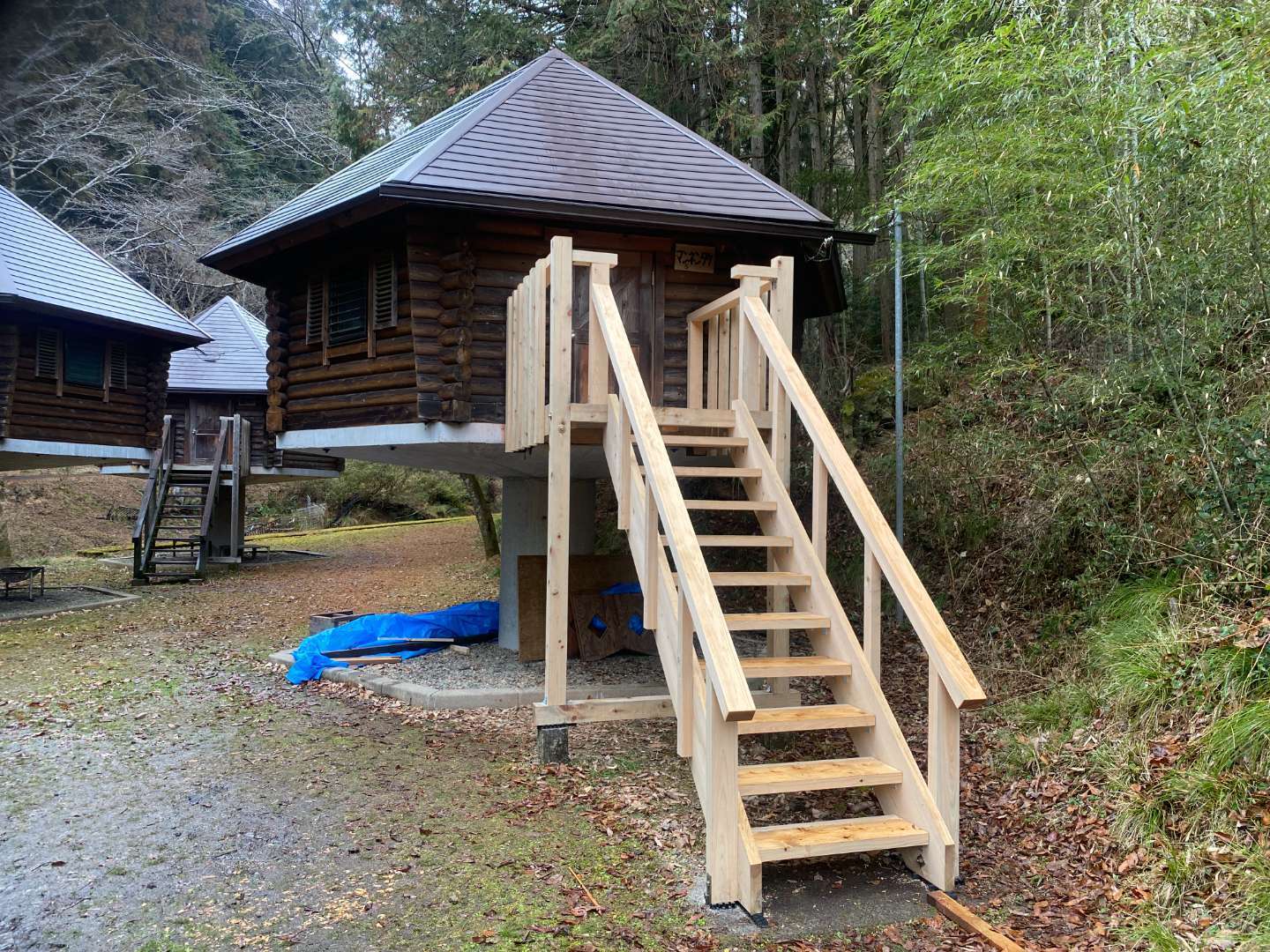 関市キャンプ場 八滝ウッディランド バンガロー階段架け替え工事